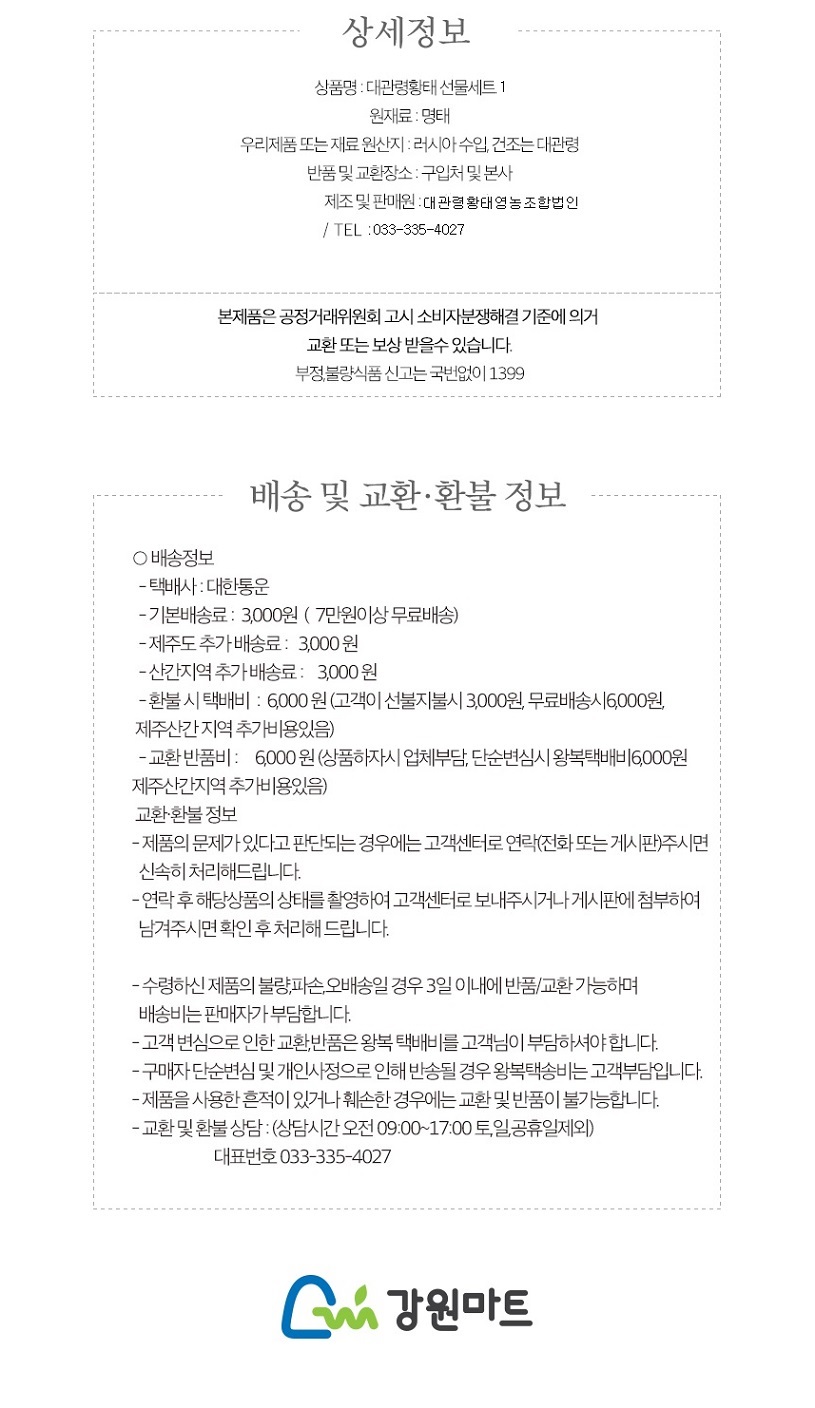 주소 : 강원도 평창군 대관령면 올림픽로 191 대관령황태영농조합법인